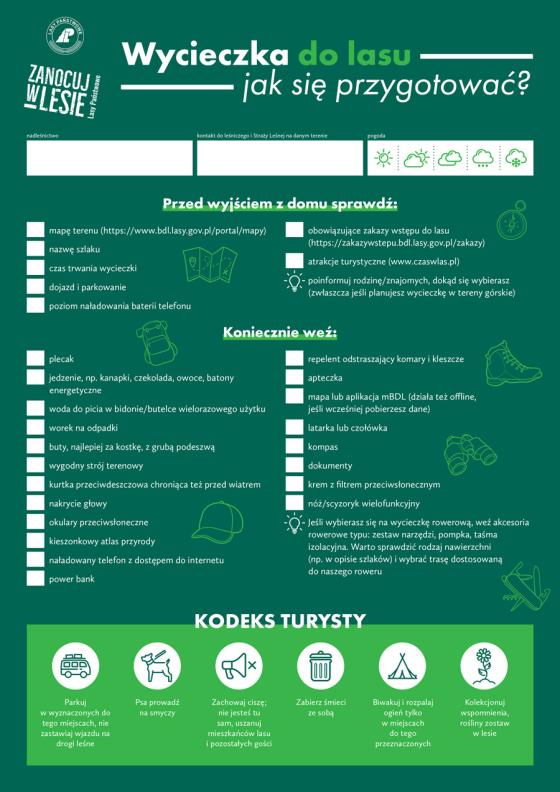 - mapą okresowego zakazu wstępu do lasu https://zakazywstepu.bdl.lasy.gov.pl/zakazy/ Przed wyjściem do lasu, sprawdź, czy obszar nie znajduje się na obszarze objętym zakazem;